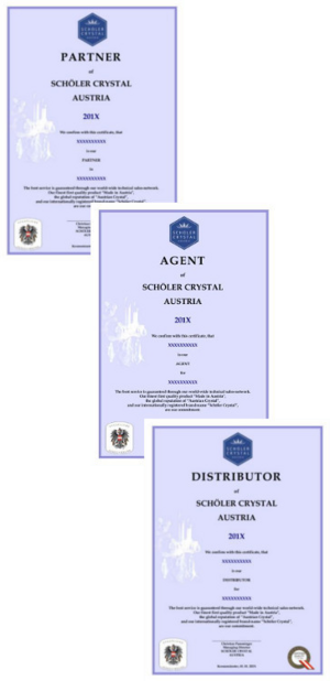 Every year Schöler issues three different certificates for its network of worldwide partners, agents and distributors. All these documents are valid for one year and serve as a verification of high quality and Austrian origin.
